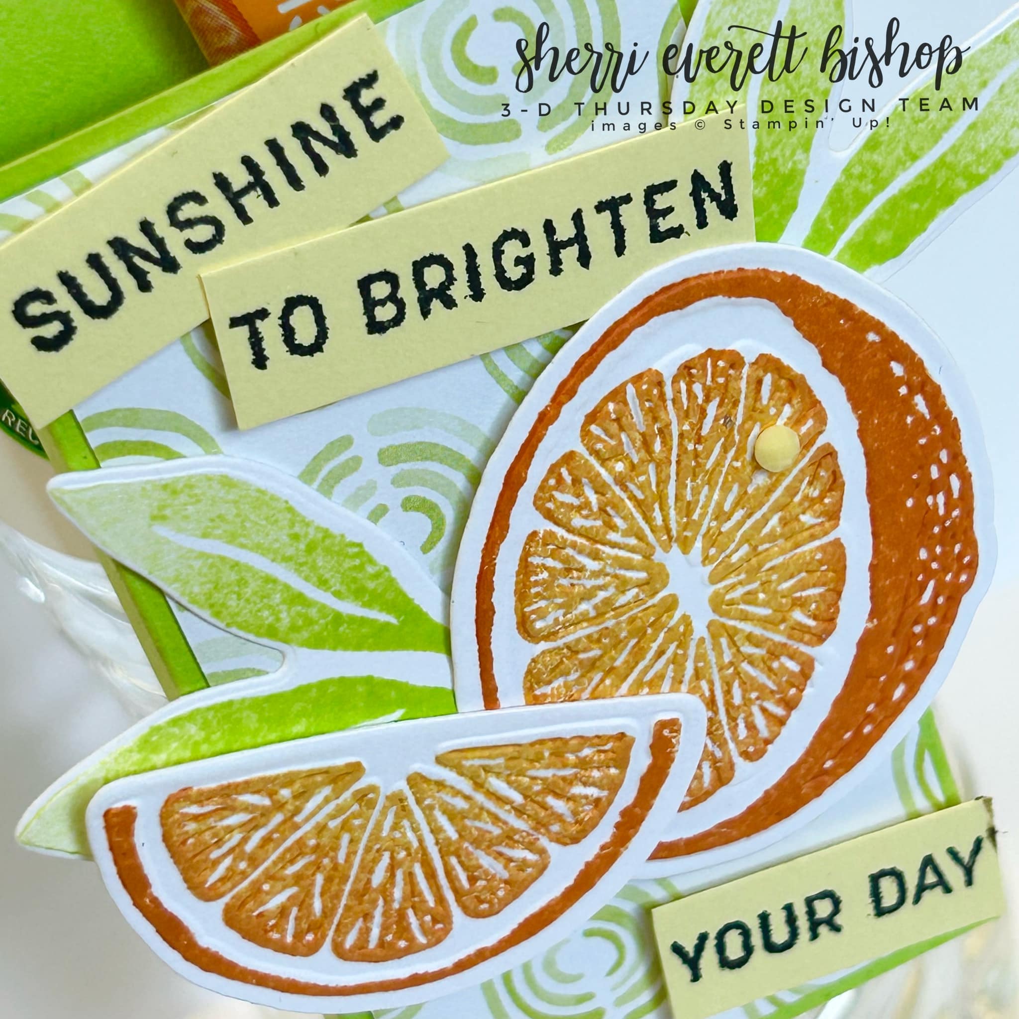 Sherri used two stamp sets for her project including Sweet Citrus and Sending Smiles to complete her project.
